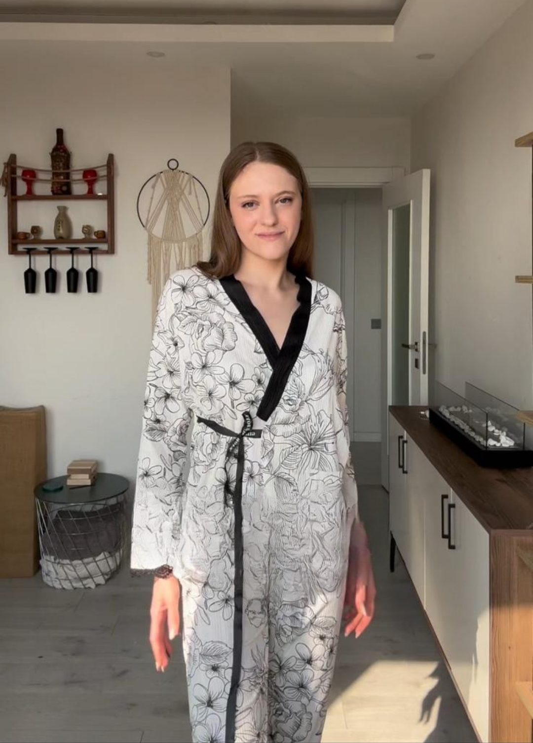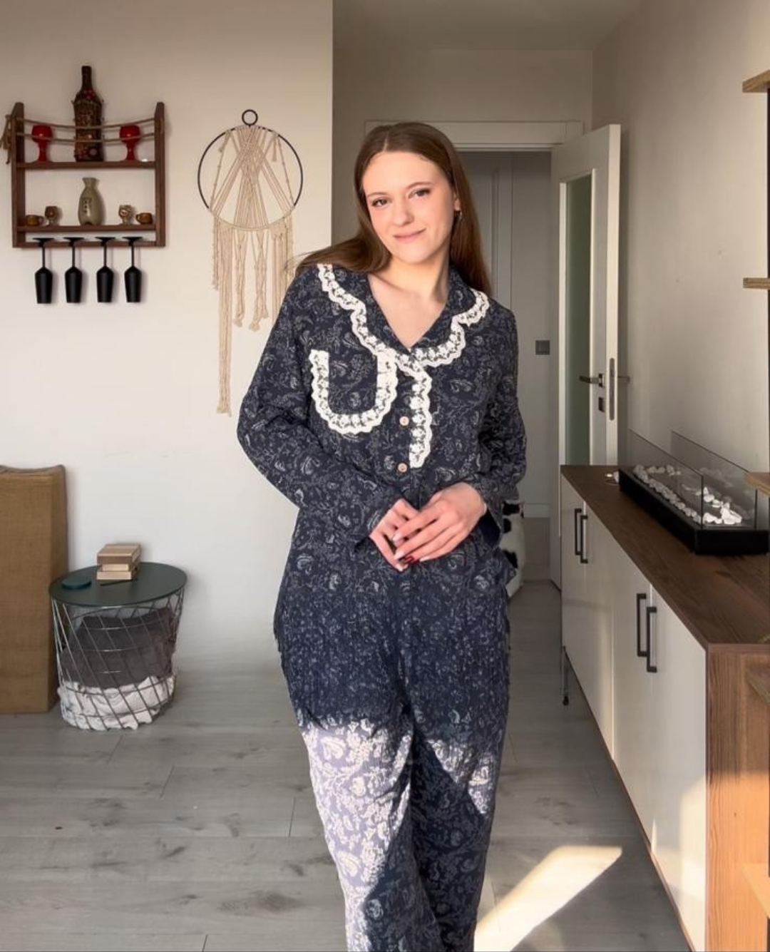 Rahatlık ve şıklığın birleştiği uzun pijama takımıyla tanışın! Pamuklu kumaşıyla nefes aldırır, yumuşak dokusuyla gün boyu konfor sağlar. Modern kesimi ve zarif tasarımıyla evde stilinizi tamamlayın. Geceden sabaha rahatlığın keyfini çıkarın!